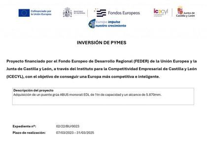 Adquisición de un puente grúa ABUS monorail EDL de 1tn de capacidad y un alcance de 5.870mm.
